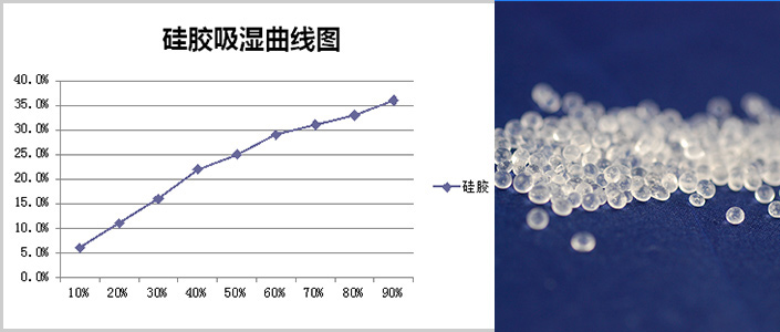 硅膠,主要成分為無定型二氧化硅,透明或乳白色不規(guī)則粒狀或球型固體。具有開放的多孔結(jié)構(gòu),吸附性強,能吸附多種物質(zhì),是一種高性能的活性吸附劑。